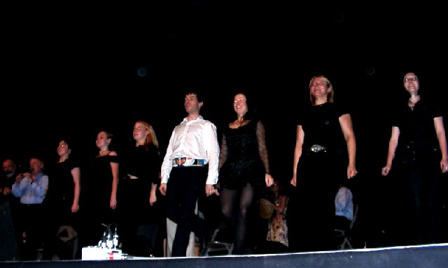Die Chieftains (im Hintergrund) spielen das "Kerry Reel Set". Und Sabrina, Nadine, Jacqueline und Daniela zeigen ihre Schritte. Nicht zu sehen: Jenny und Sandra.