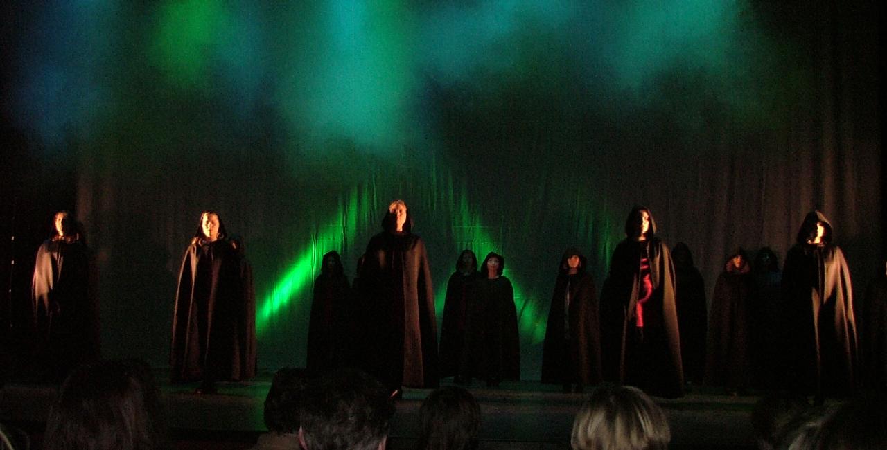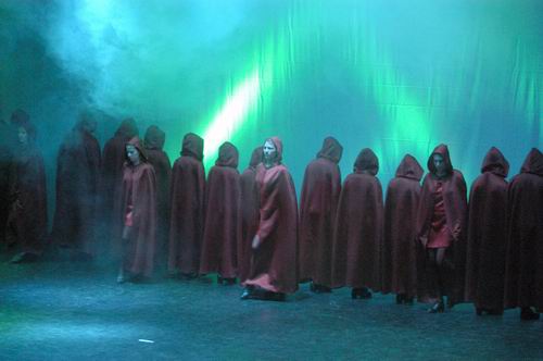 Verblüffung im Zuschauerraum: Zu düsteren Industrialklängen eröffnen wir unsere Tanzcollage "Planet of Darkness", eine Neuinterpretation des uralten Kampfes von bösen gegen gute Mächte, in denen aber das Böse, Dunkle schließlich obsiegt ... |