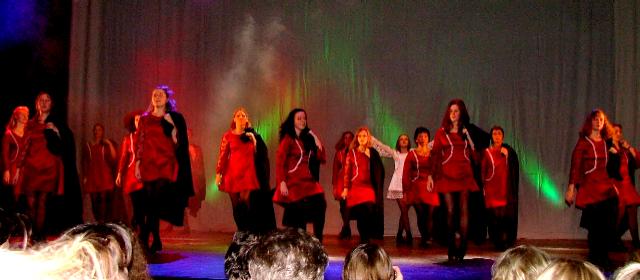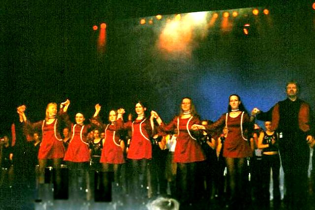 Mit dieser Tanzfolge erreichen wir an diesem Abend mit 54% der Zuschauerstimmen einen schönen zweiten Platz (Flamenco: Erster mit 56%) und damit das Vorfinale. Aber offensichtlich zu wenig, um die hauchdünne Chance zu wahren, im Vorfinale unter 23 zweit- und drittplatzierten Gruppen unter die ersten drei zu kommen, um dann doch noch ins Finale einziehen zu können. Also stellen wir das Programm komplett um, schmeißen Gewänder, Show und Lichteffekte raus und setzen auf das, was wir am besten können: reines, pures Steppen ... Riskante Soloparts und eine dynamisch-aggressive Choreographie- mit unserem neuen "Reel" reißen wir die Zuschauer von den Sitzen und setzen uns an die Spitze: Erster im Vorfinale! Wir stehen im Finale! |