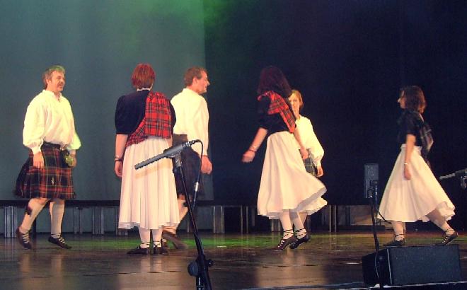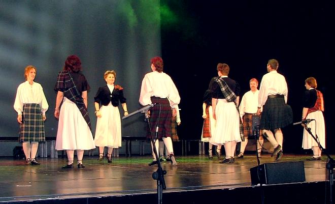 Ebenfalls in Hochform: die "Swinging Kilts". Fantastisch unterstützt und angefeuert gerade auch von unseren jungen Fans zeigen wir, wie man Spaß, Musik und Sport hervorragend verbinden kann. Unser Tanzmedley enthält zum ersten Mal auch einen modernen schottischen Tanz, der erst im Jahr zuvor von einem Schotten aus Karlsruhe(!) choreographiert wurde. |