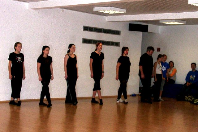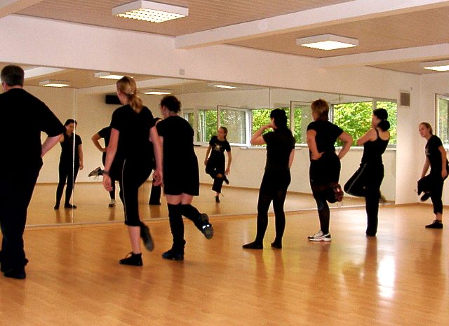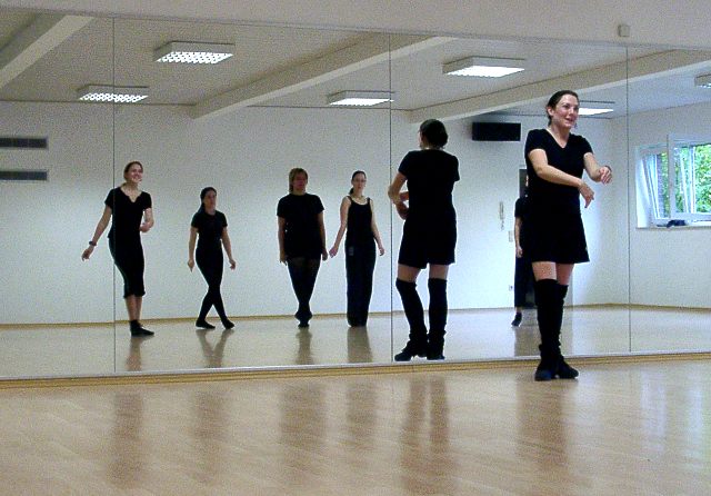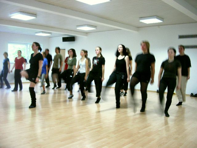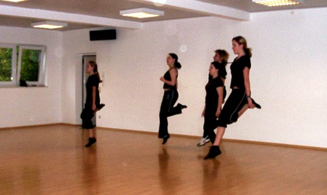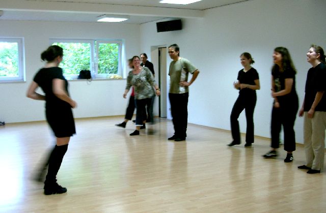 Vom 21. bis zum 23. Oktober 2005 war Anne-Marie Cunningham zu Gast bei uns in Duisburg. Die ehemalige Riverdance-Tänzerin (zu sehen auf dem Video mit Colin Dunne und Jean Butler) zeigte uns ein Wochenende lang ein paar ihrer phänomenalen Tricks. 30 Anfänger und Fortgeschrittene besuchten den Workshop, darunter wie gewohnt viele Jungendliche. Alle Teilnehmer waren restlos begeistert und hoffen darauf, dass Anne-Marie bald wiederkommt ...