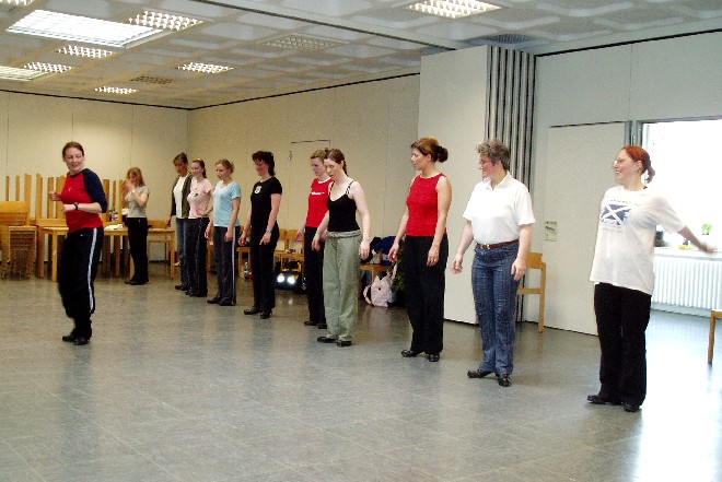 Vom 3. bis zum 5. Mai 2006 war Anne-Marie Cunningham erneut zu Gast bei uns in Duisburg. Zwei Tage lang unterrichtete sie im Auftrag des Jugendzentrums Duisburg-Nord die Schülergruppe der Gesamtschule Walsum, danach die Tänzer von Celtic Feet. Die Profi-Tänzerin, die fünf Jahre lang mit Riverdance um die Welt tourte, zeigte uns erneut viele technische Tricks. Insgesamt 43 Tänzer (17 Schüler und schließlich 26 Anfänger und Fortgeschrittene von Celtic Feet) profitierten diesmal von ihrer langjährigen Erfahrung.