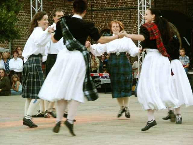 Wir kamen mit über 30 schottischen und irischen Tänzern! Vor vielen hundert Besuchern, von "Moyland" zwischenzeitlich in Ceili-Ekstase gespielt und gesungen, zeigten wir schottische Tänze und irische Reels, Jigs, Hornpipes.